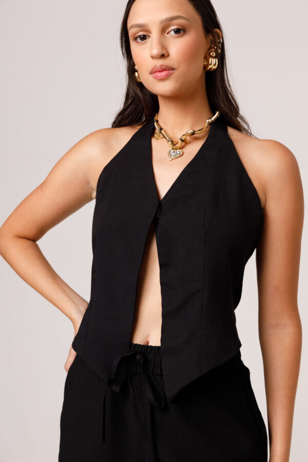 | Combinações sugeridas | Colete OLÍVIA, blusas ajustadas, camisas, sandálias, salto ou scarpin |