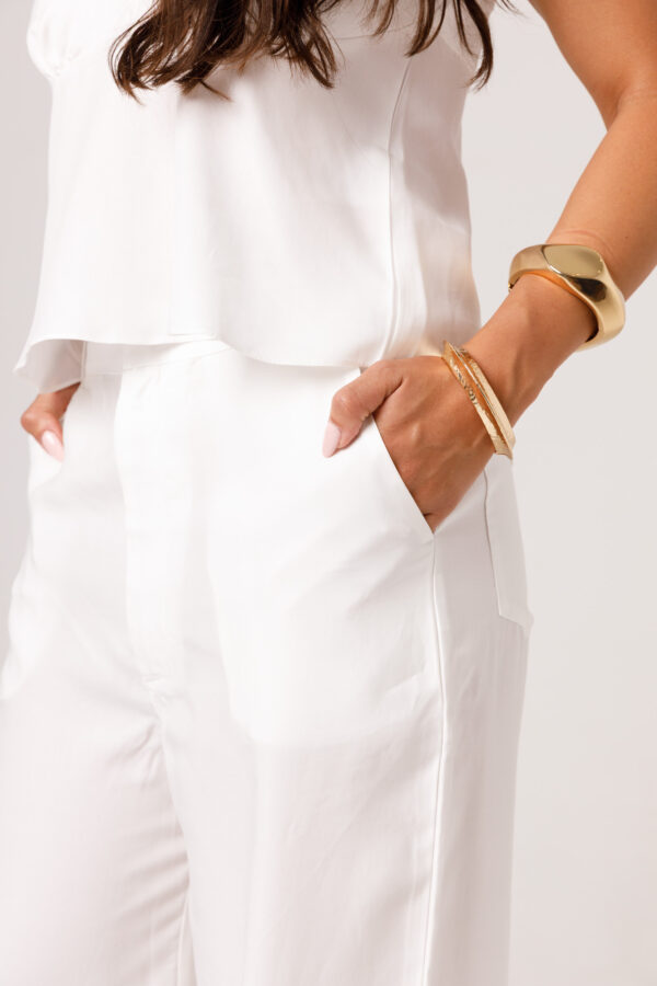 A CALÇA OLÍVIA BRANCO foi pensada para compor looks elegantes e contemporâneos, com modelagem reta, cintura bem posicionada e caimento fluido. Os bolsos adicionam praticidade sem comprometer a estética da peça. É uma opção versátil para coordenar com coletes, blusas mais ajustadas ou tops leves, criando produções que podem ir do casual chic a ocasiões mais arrumadas. Disponível nas cores Branco, Rosa e Preta.