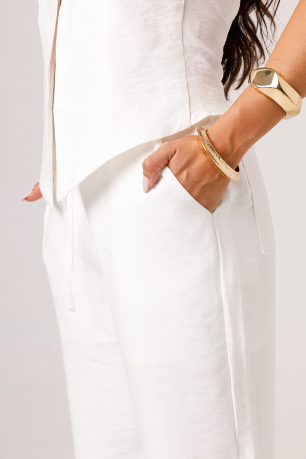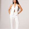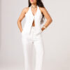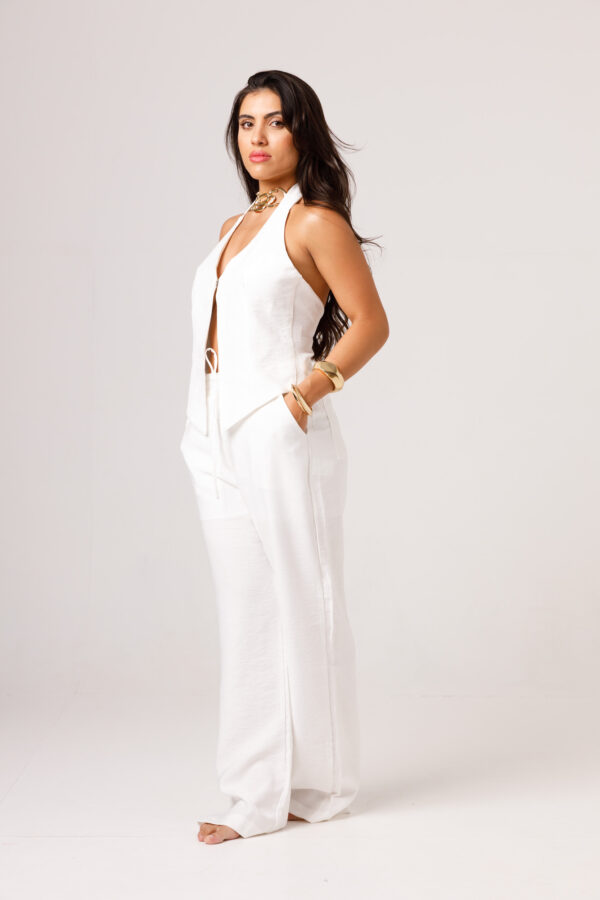 O COLETE OLÍVIA BRANCO se destaca pela frente aberta, modelagem alinhada ao corpo e visual sofisticado. A parte posterior com amarração valoriza o acabamento da peça e adiciona personalidade ao look. É um item ideal para compor conjuntos modernos e elegantes, funcionando bem tanto sozinho quanto coordenado com calças de alfaiataria leve. Disponível nas cores Branco, Rosa e Preto.