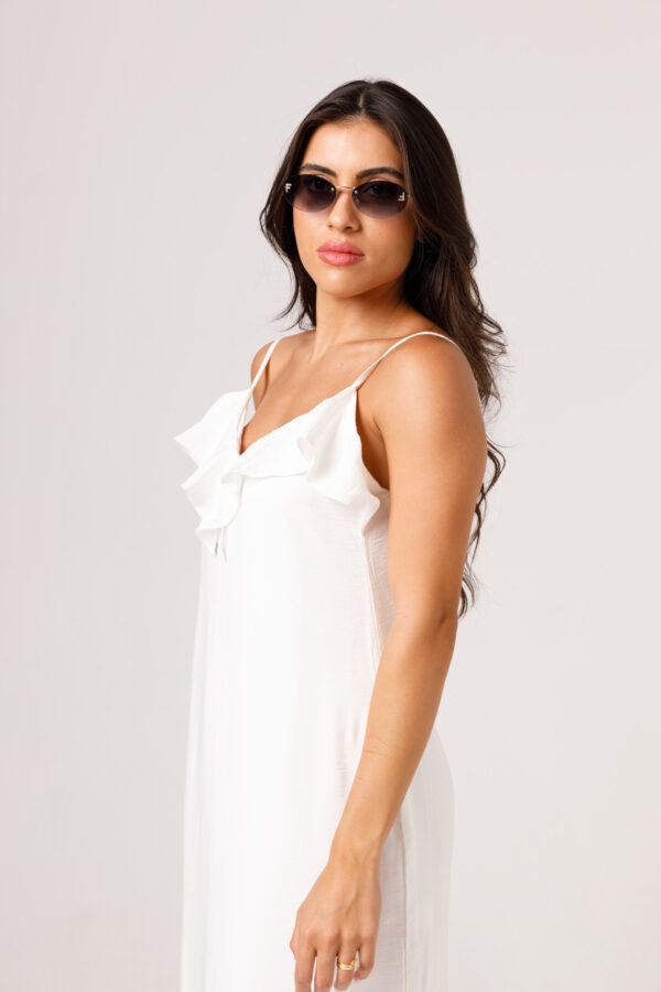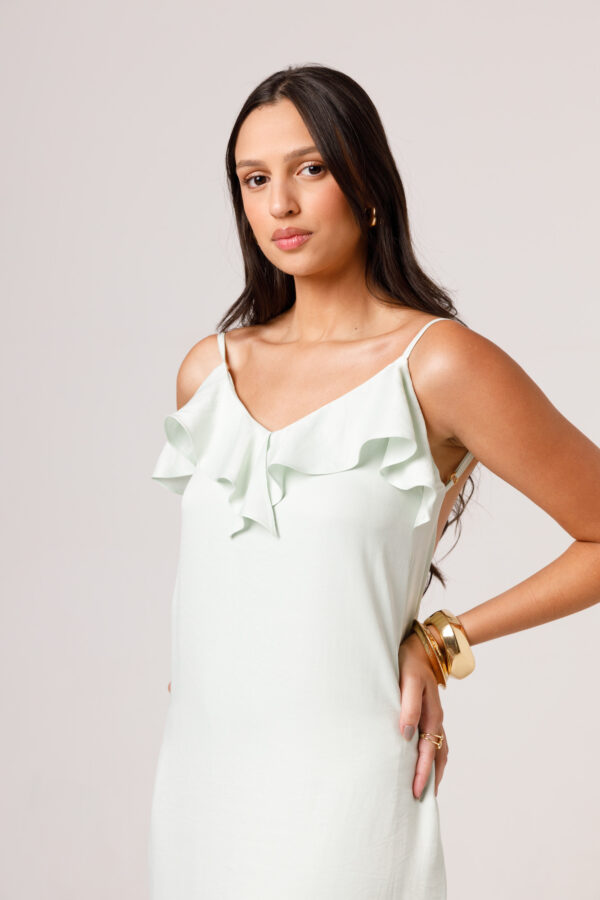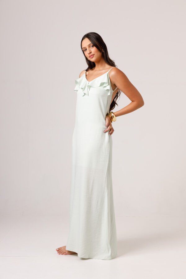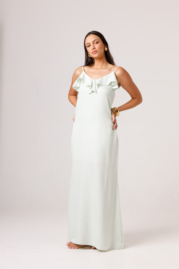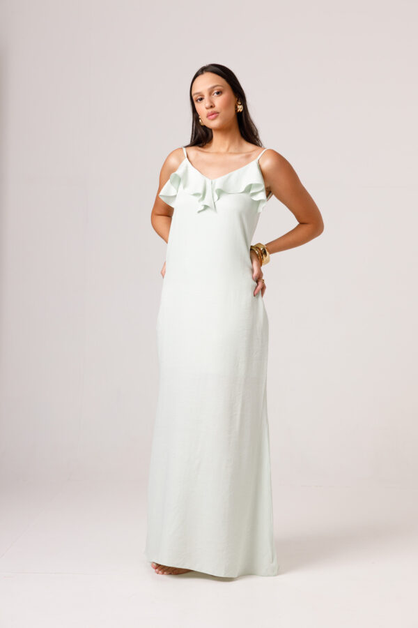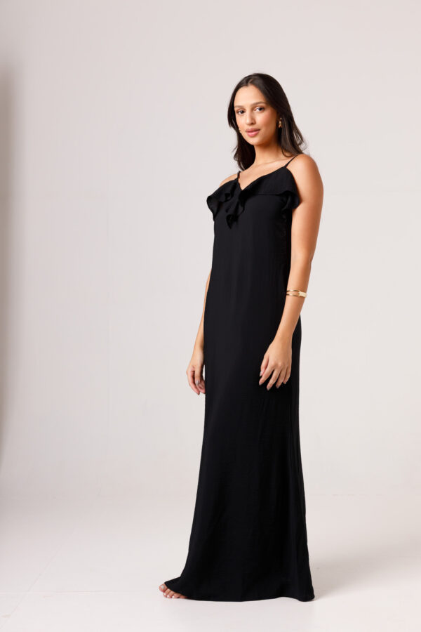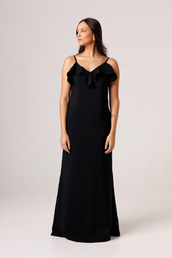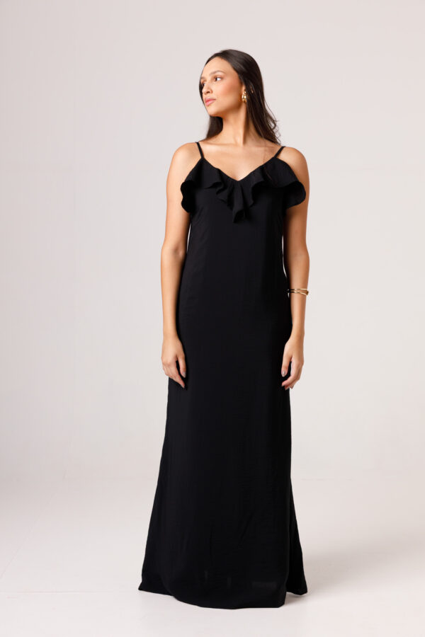O VESTIDO BABADO PRETO aposta em uma estética leve e elegante, com modelagem longa, alças finas e babado em destaque na parte superior. O visual fica ainda mais feminino com o recorte das costas abertas e o caimento solto ao longo do corpo. É uma peça pensada para compor produções delicadas, frescas e sofisticadas. Disponível nas cores Preto, Branco e Verde.