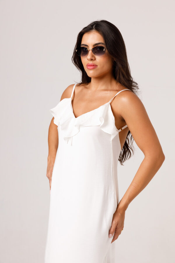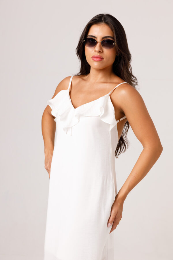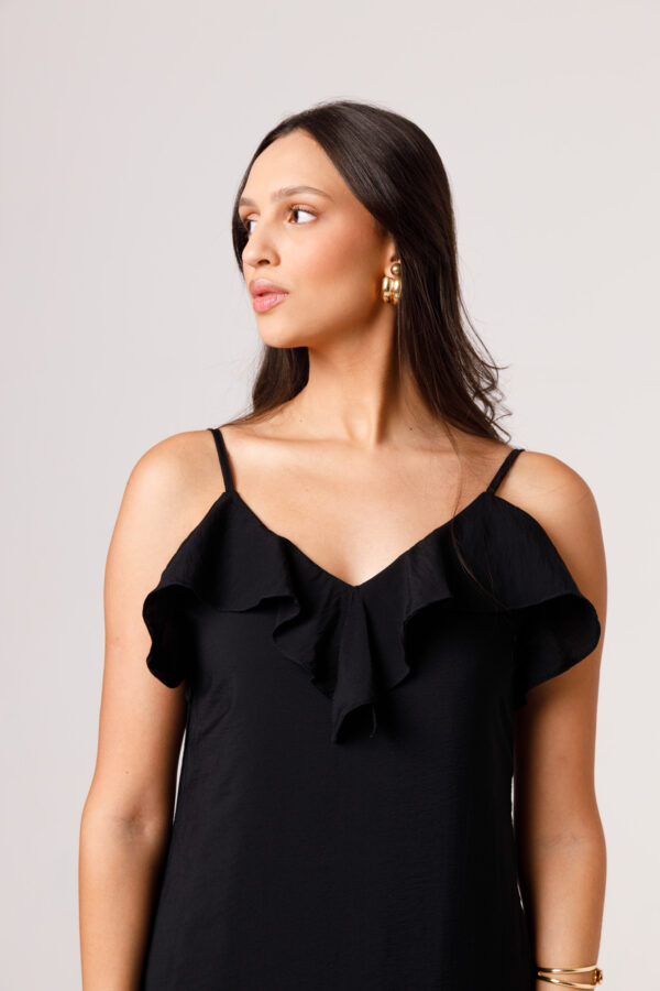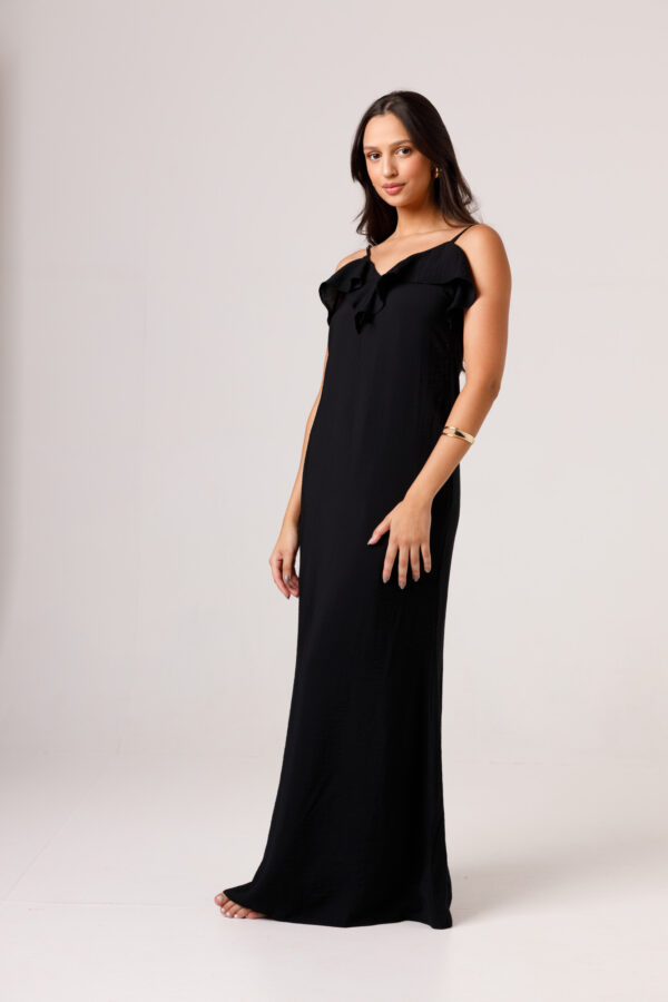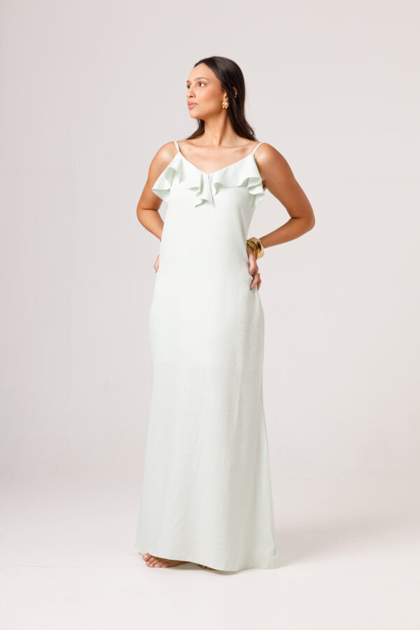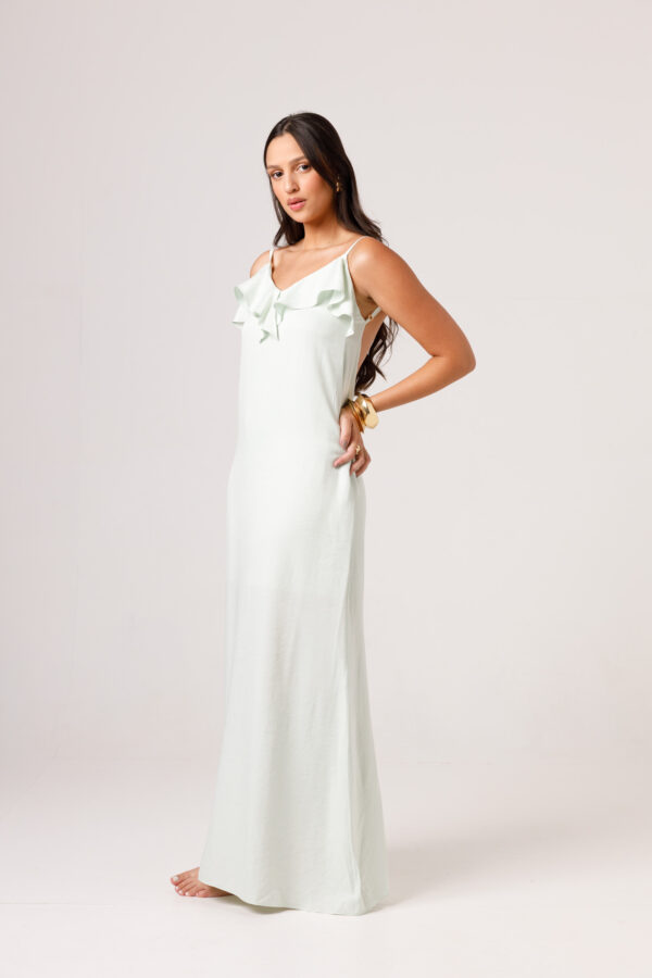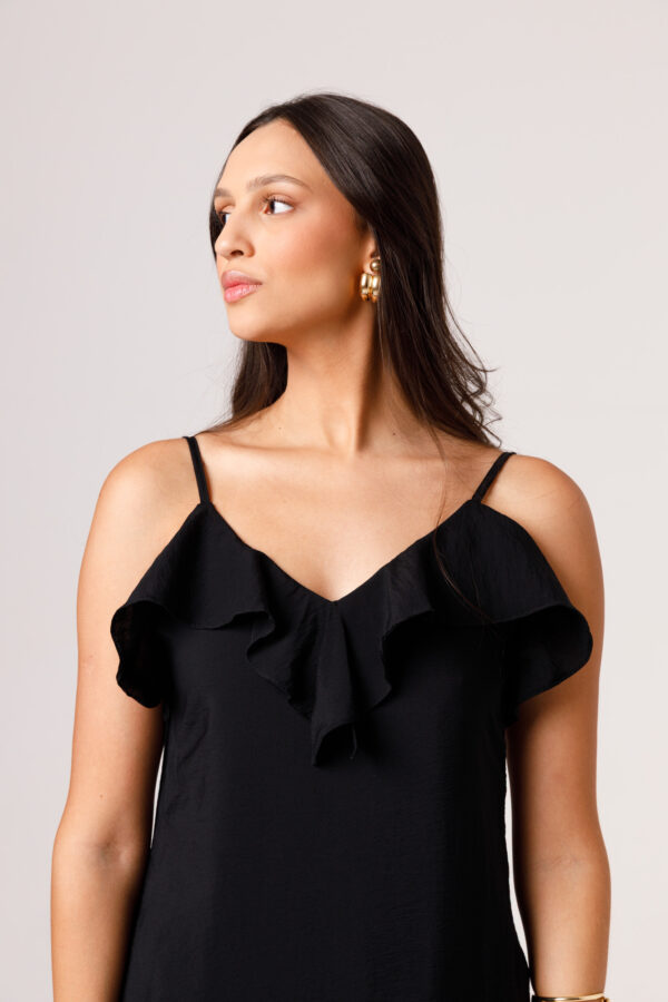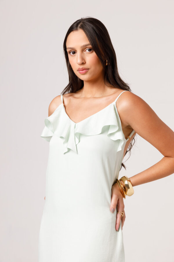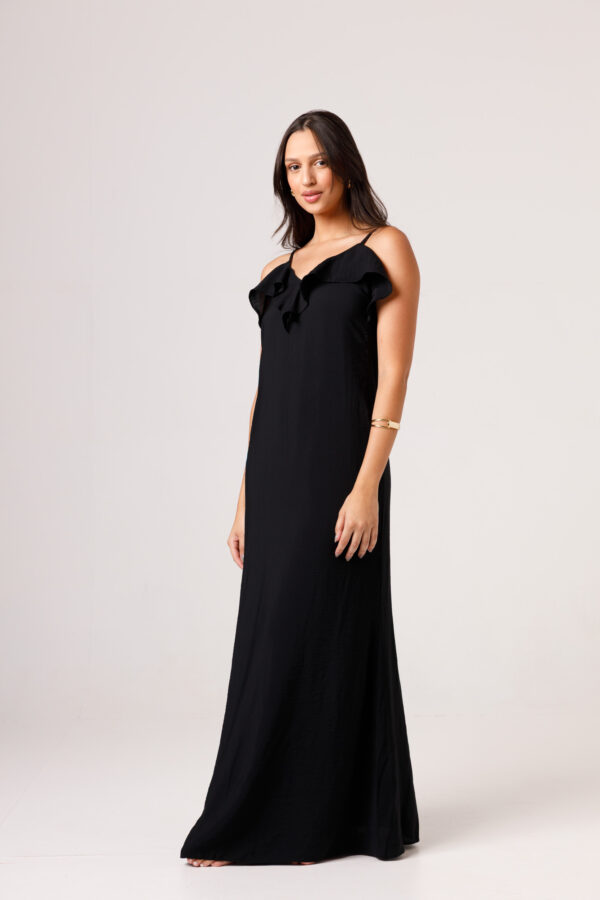 O VESTIDO BABADO PRETO aposta em uma estética leve e elegante, com modelagem longa, alças finas e babado em destaque na parte superior. O visual fica ainda mais feminino com o recorte das costas abertas e o caimento solto ao longo do corpo. É uma peça pensada para compor produções delicadas, frescas e sofisticadas. Disponível nas cores Preto, Branco e Verde.